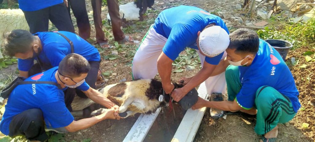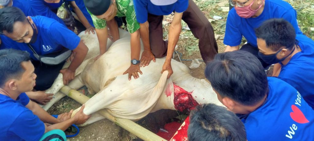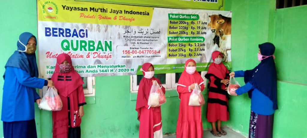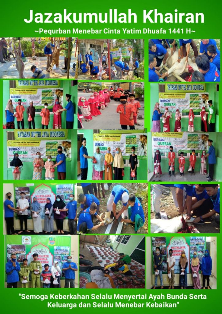 Segala puji bagi Allah SWT atas segala nikmat dan karuniaNya. sholawat dan salam kita sanjungkan kepada Nabi Muhammad SAW.Alhamdulillah Pemotongan hewan qurban di asrama yatim Mutiara gading rivera YMJI berjalan dengan lancar..Kami selaku Panitia Qurban 1441 H Yayasan Muthi Jaya Indonesia Memengucapkan terima kasih yang sebesar-besarnya kepada para pequrban yang telah mempercayakan hewan kurbannya kepada kami. Semoga Allah SWT menerima ibadah kurban dari bapak/ibu/saudara/saudari sekalian dan membalasnya dengan pahala yang berlipat serta kebaikan dan keberkahan untuk kita semua… Amin Amin Ya Robbal Alamin.
