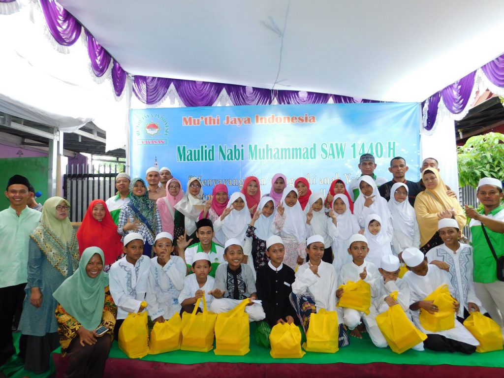Alhamdulillah, kami panjatkan syukur kehadirat Allah SWT atas terlaksananya santunan di Yayasan Muthi Jaya Indonesia dengan lancar. Santunan ini sekaligus dalam rangka peringatan hari raya Maulid Nabi Muhaammad SAW. tahun 1440 H.